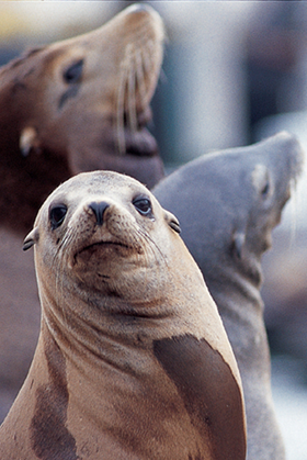 A few California sea lions began “hauling out” on PIER 39′s K-Dock shortly after the Loma Prieta earthquake hit San Francisco in October 1989. By January 1990, the boisterous barking pinnipeds started to arrive in droves and completely took over K-Dock, much to the exasperation of PIER 39′s Marina tenants. The Marina Staff turned to The Marine Mammal Center, an organization devoted to the rescue and rehabilitation of marine mammals, for advice about their new slippery tenants. After much debate and research, the experts from The Marine Mammal Center recommended that the sea lions stay in their newfound home.